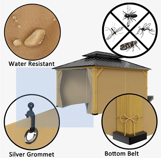- INGENIOUS FEATURES-Enjoy outdoor time or savor a meal within a curtained gazebo without being harassed, It is easy to attach with clip-on rings or hooks, which fit different gazebo structures. the sidewalls controlling the bottom. If you’re looking for something that is sturdy and strong against the winds this is the right product