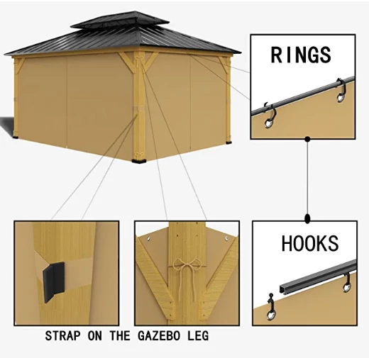 - INGENIOUS FEATURES-Enjoy outdoor time or savor a meal within a curtained gazebo without being harassed, It is easy to attach with clip-on rings or hooks, which fit different gazebo structures. the sidewalls controlling the bottom. If you’re looking for something that is sturdy and strong against the winds this is the right product
