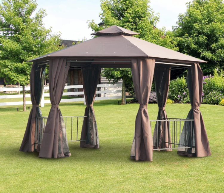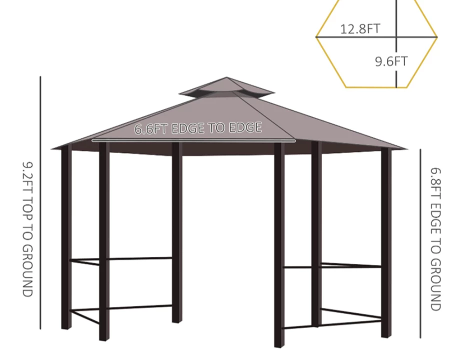 - UNIQUE STYLE: The hexagon shape and two-tiered canopy top of this outdoor gazebo canopy provide a unique yet stylish centerpiece to any outdoor setting. Perfect for placement in your backyard, garden or lawn this piece can also be used as the shelter for special events including weddings, birthday parties, and picnics.
