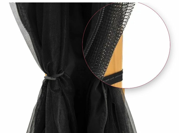Enhance the functionality of your metal or wood-framed gazebo with weather-resistant mosquito netting. Keep insects away without the spray. The netting is easily installed with included ring hardware to the dual curtain/netting rails that are part of select wood gazebos. Netting can be closed and secured with quality zippers. When not in use simply use the included ties to keep everything neatly contained and out of the way.